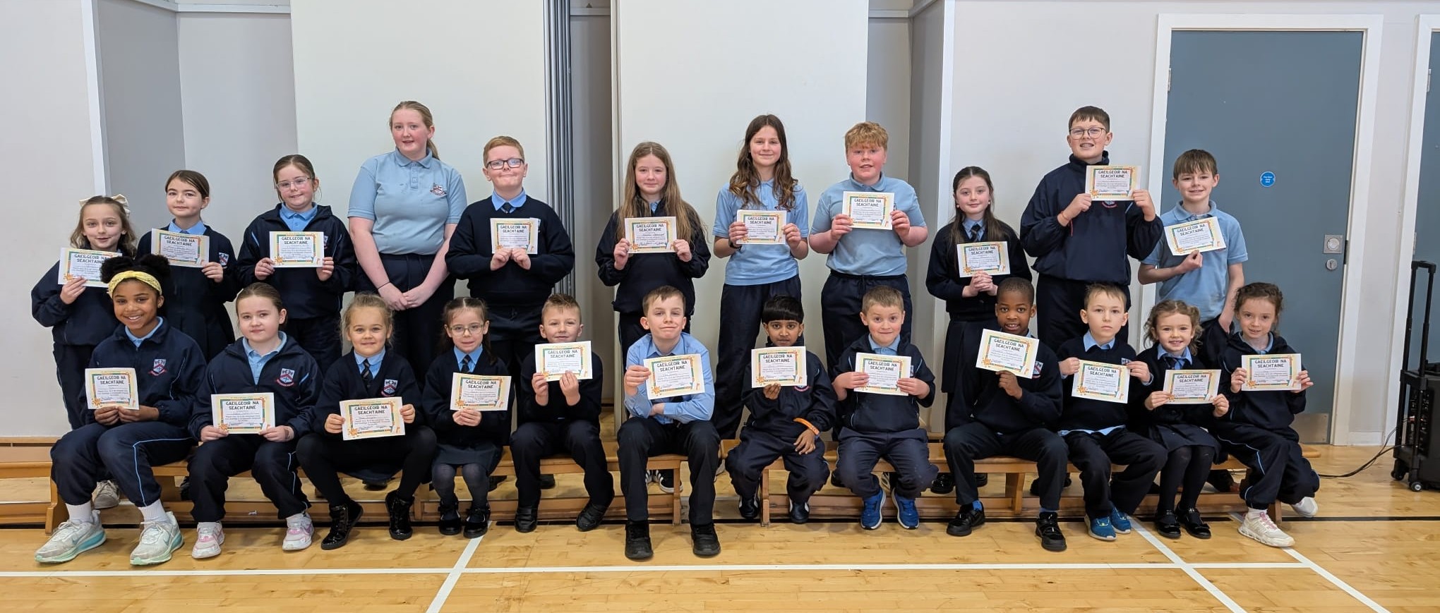 Gach seactain piocann na múinteoirí ranganna Gaeilgeoir na Seachtaine óna rang go randamach. Is é misean an dalta sin níos mó Gaeilge a chur cinn sa bhaile, sa rang agus timpeall na scoile. Comhghairdeas le buaiteoirí na seachtaine seo.