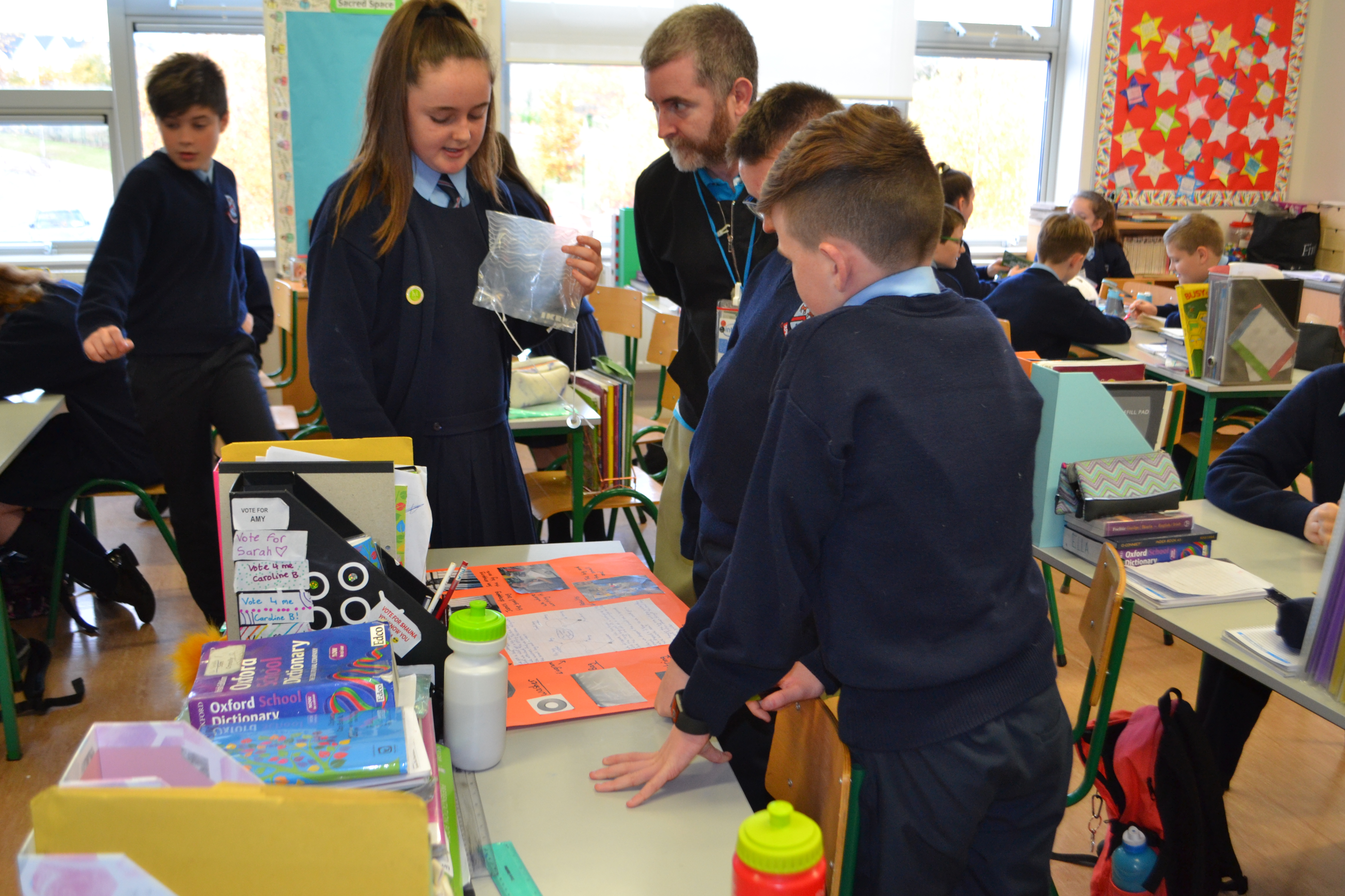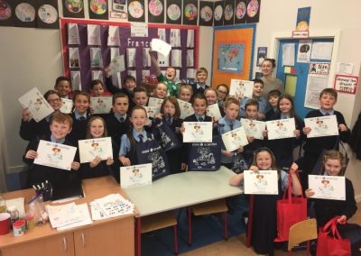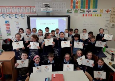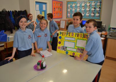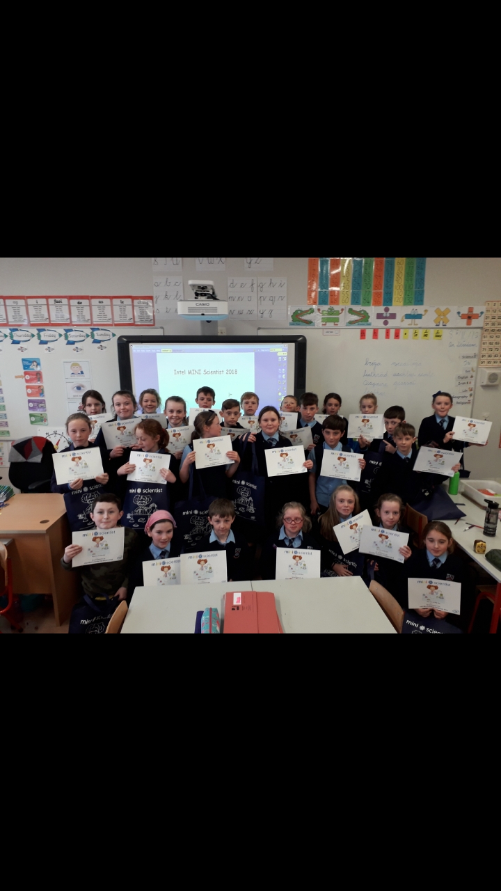 On November 8th, five engineers from Intel came to St Paul’s to judge the Intel Mini Scientist competition. Four classes had entered- Ms Broderick’s 4th, Mr Duffy’s 4th, Ms Tully’s 4th and Mr Harte’s 6th. Over the last couple of weeks, the children worked in groups conducting an experiment of their choosing. Plenty of research and hard work went into investigating and conducting the experiments, gathering the materials and creating a written submission for the judges to see. The judges had a tough decision to make! There were prizes for first and second place. Michael Ward, Ben Cunningham, Lucy Cameron and Amber Lane from Mr Duffy’s class came in second place with their experiment ‘The Balloon Powered Car’. Melissa Connolly, Ella Newman, Jessica Callan Smith and Deividas Matijosaitis from Ms Tully’s class came in first place with their experiment ‘Cloud in a Jar’. The first place team will now go to the Intel offices in Leixlip to compete in the next round of the competition. We wish them all the best of luck! A huge amount of work was put in to this competition by the children and their efforts were rewarded with a goodie bag and certificate from Intel. Well done to everyone involved!