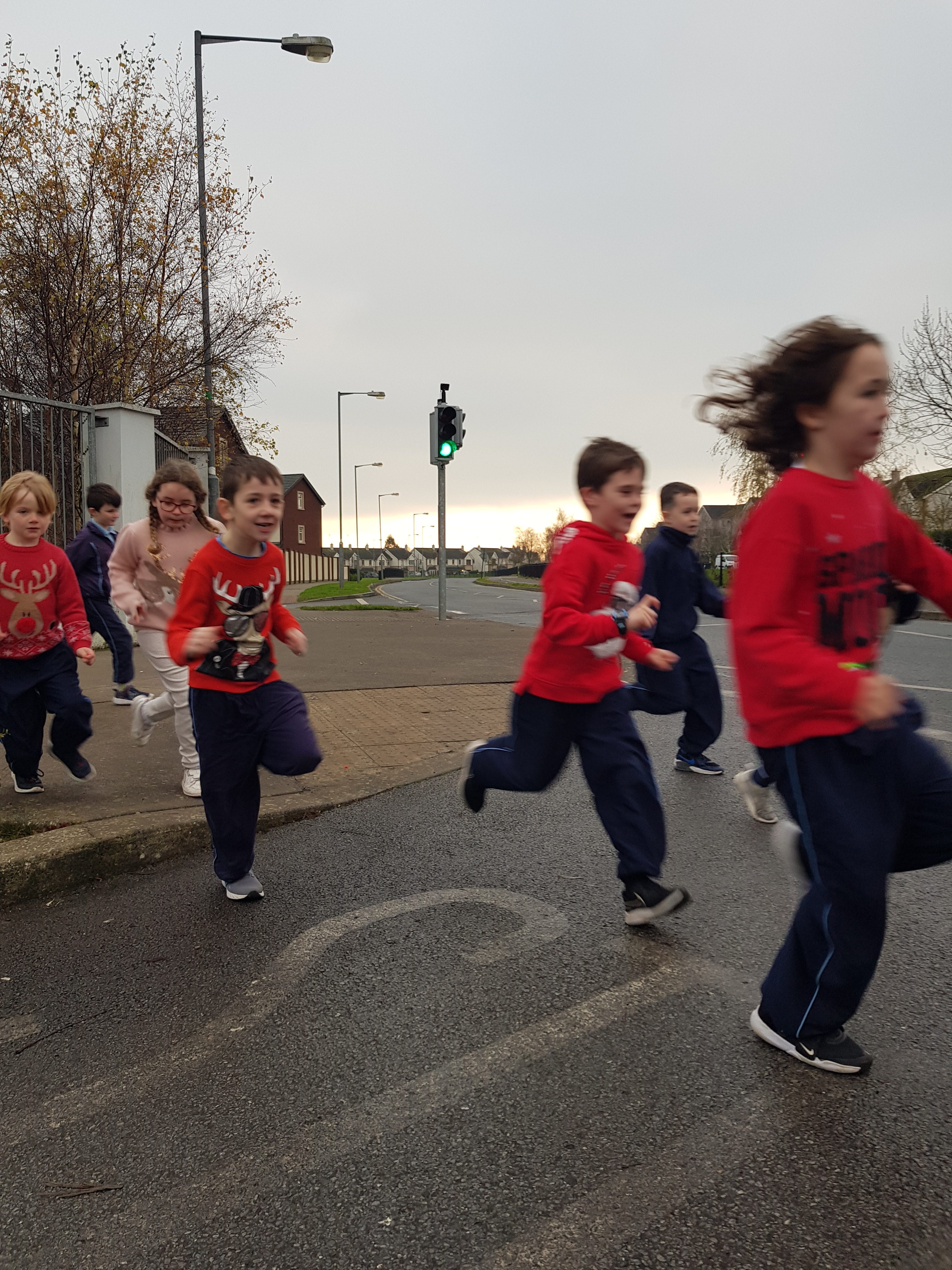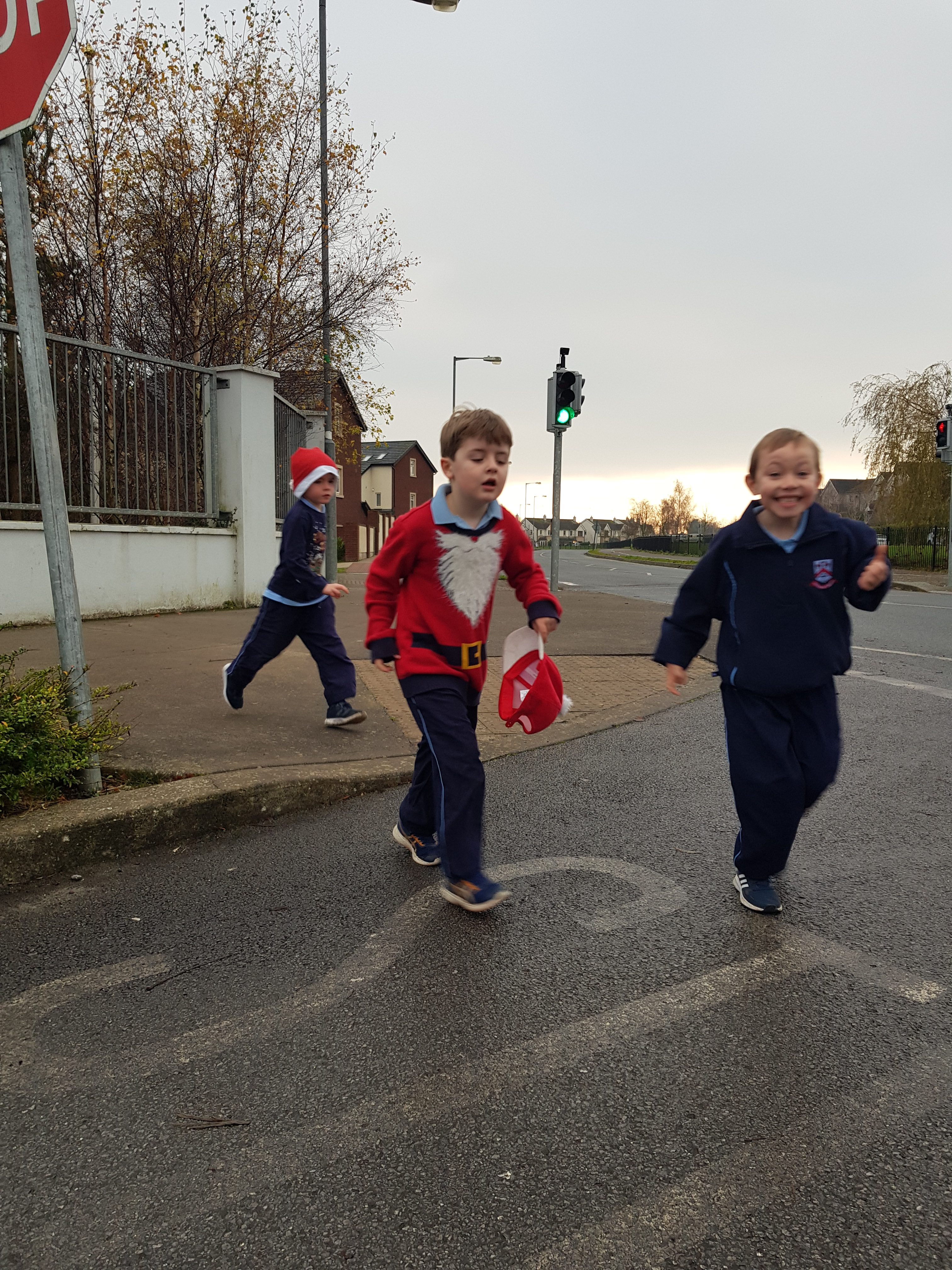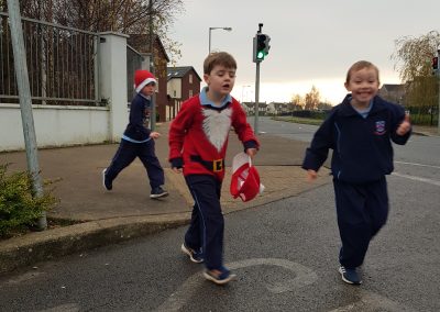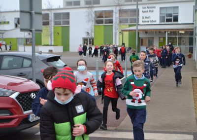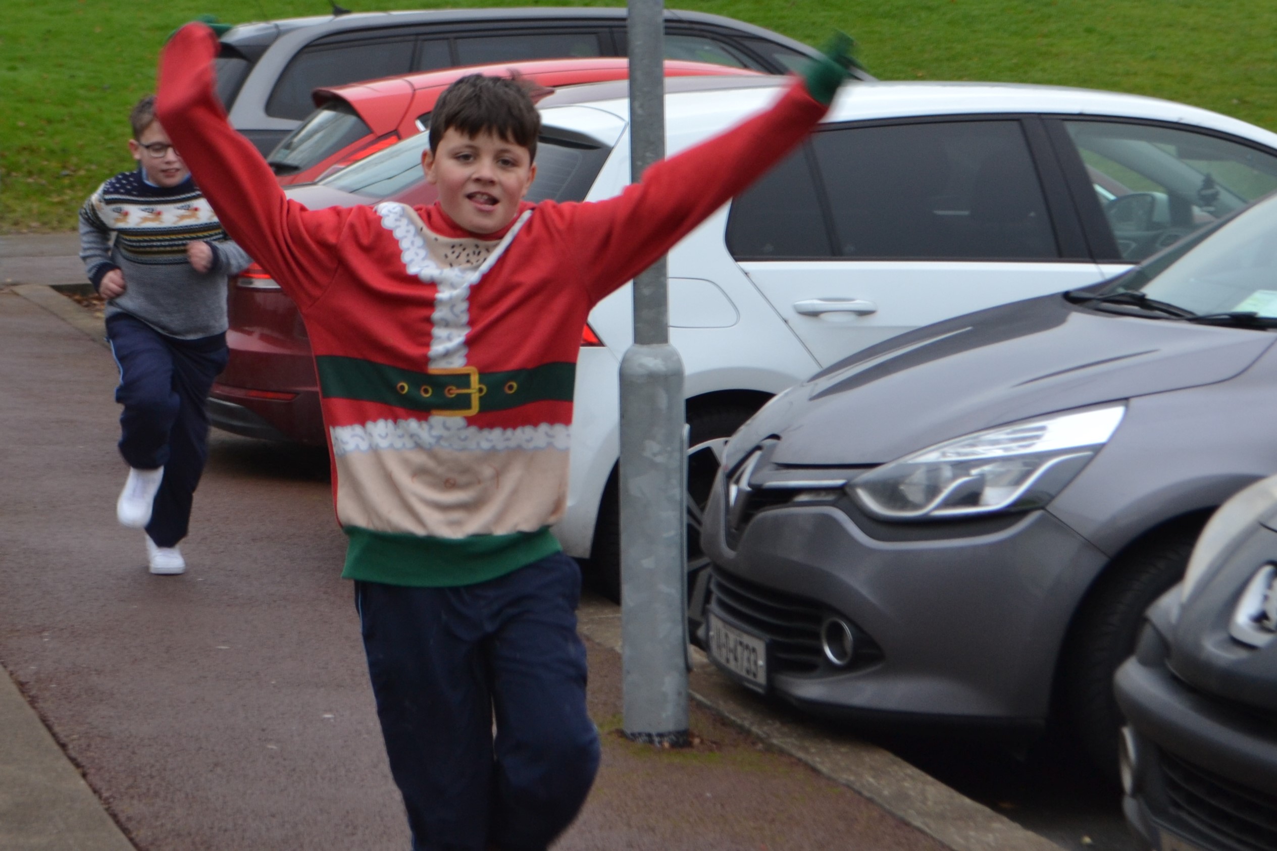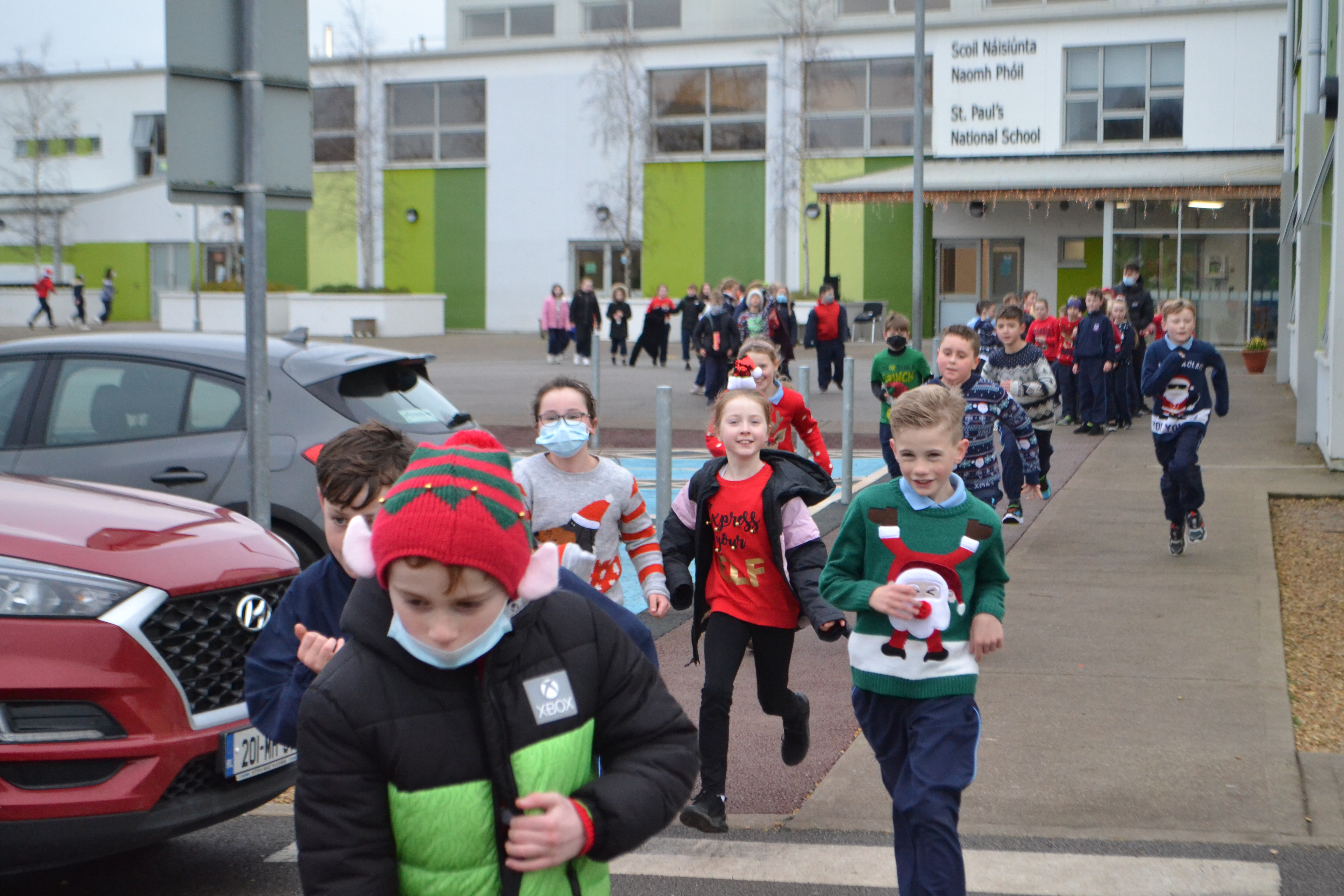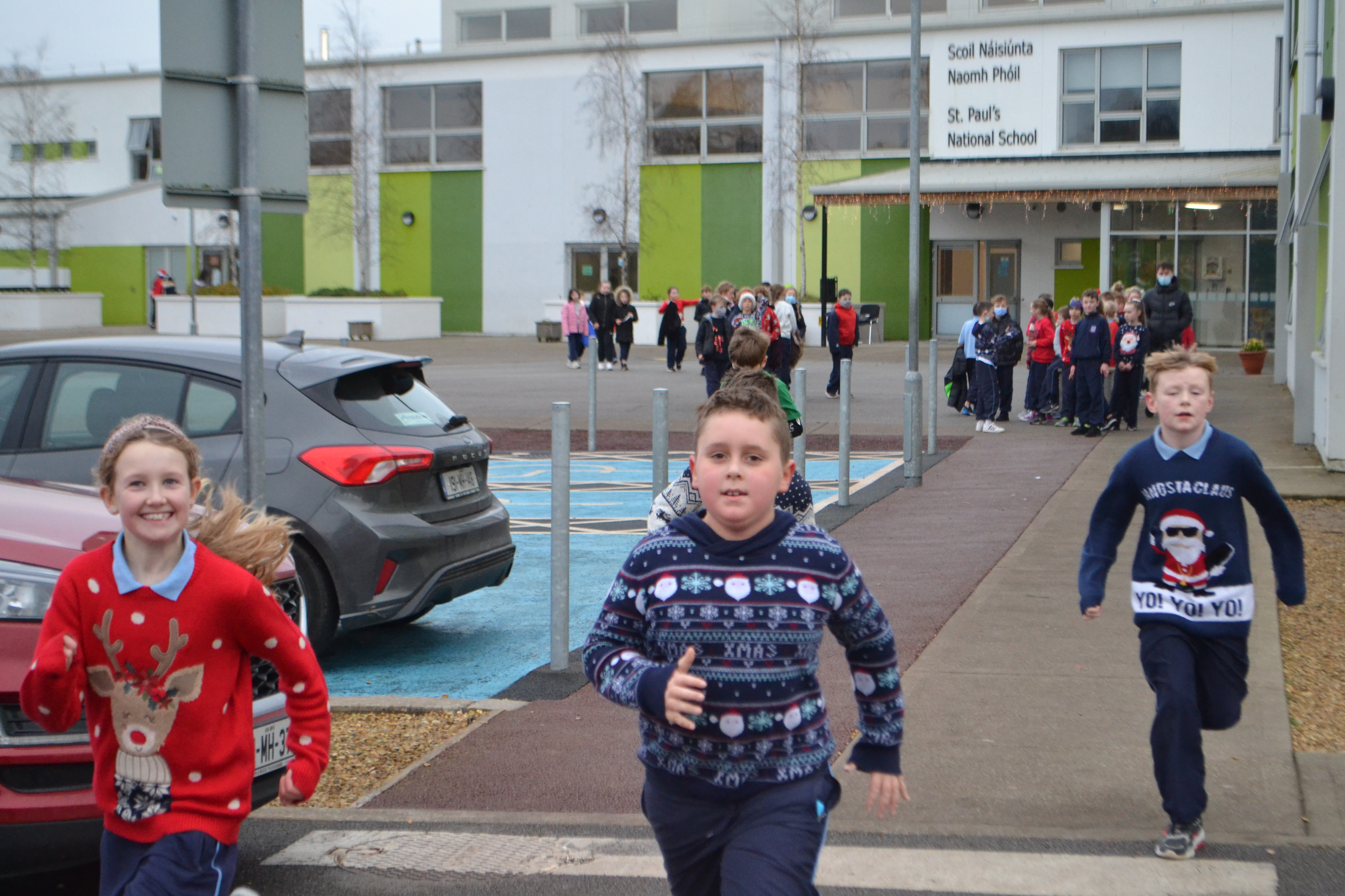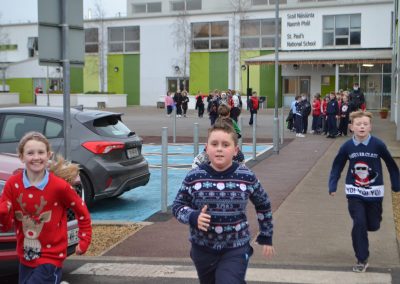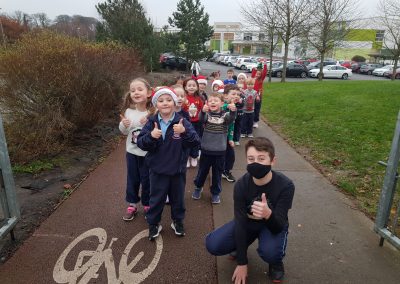 On Friday 17th December, the children of St. Paul’s N.S. took part in a Santa Run on the school grounds. All children wore their school tracksuits and something festive. The children turned up very excited wearing Christmas Jumpers, Christmas Hairbands, Santa Hats and all looked very festive.