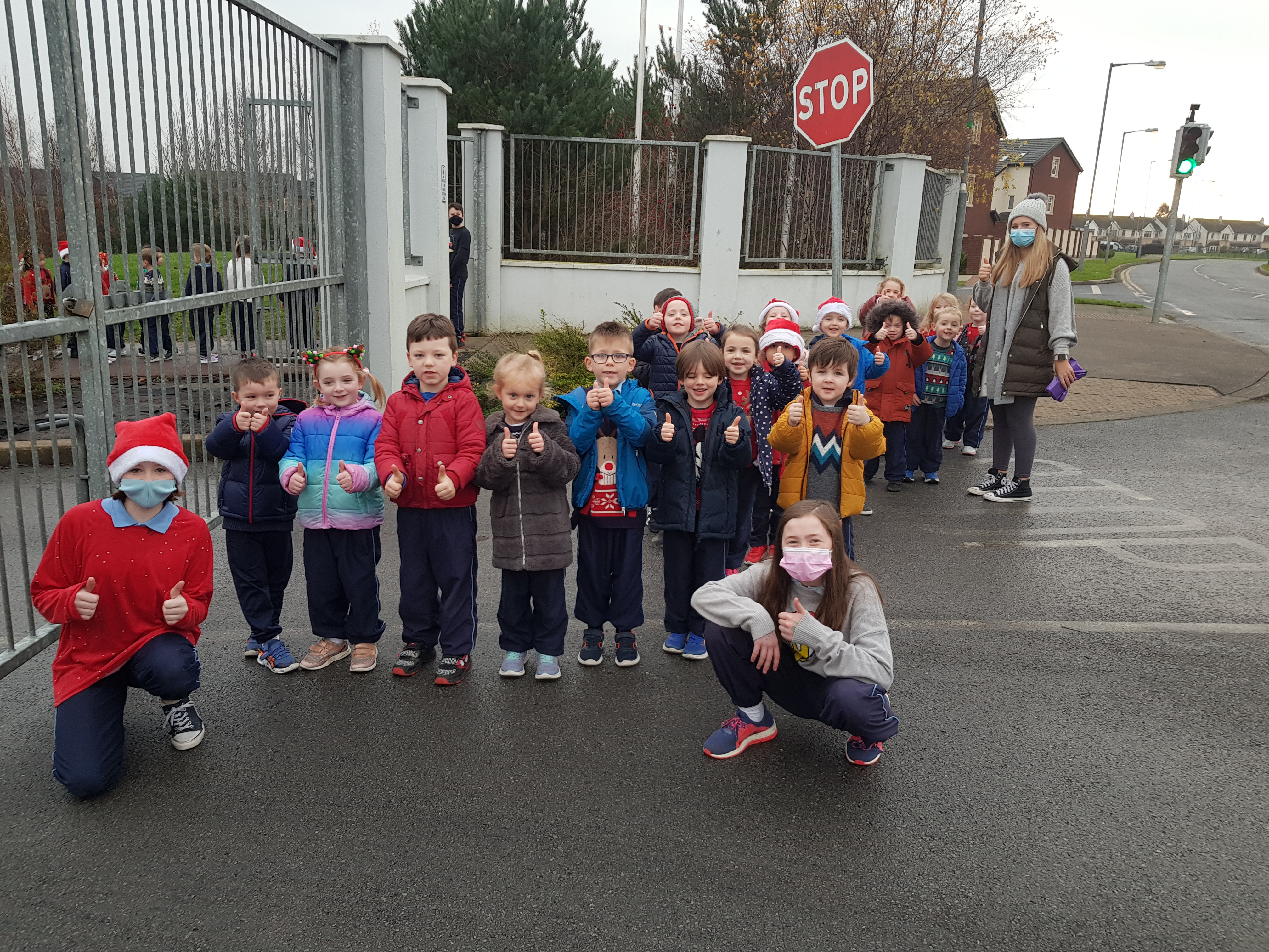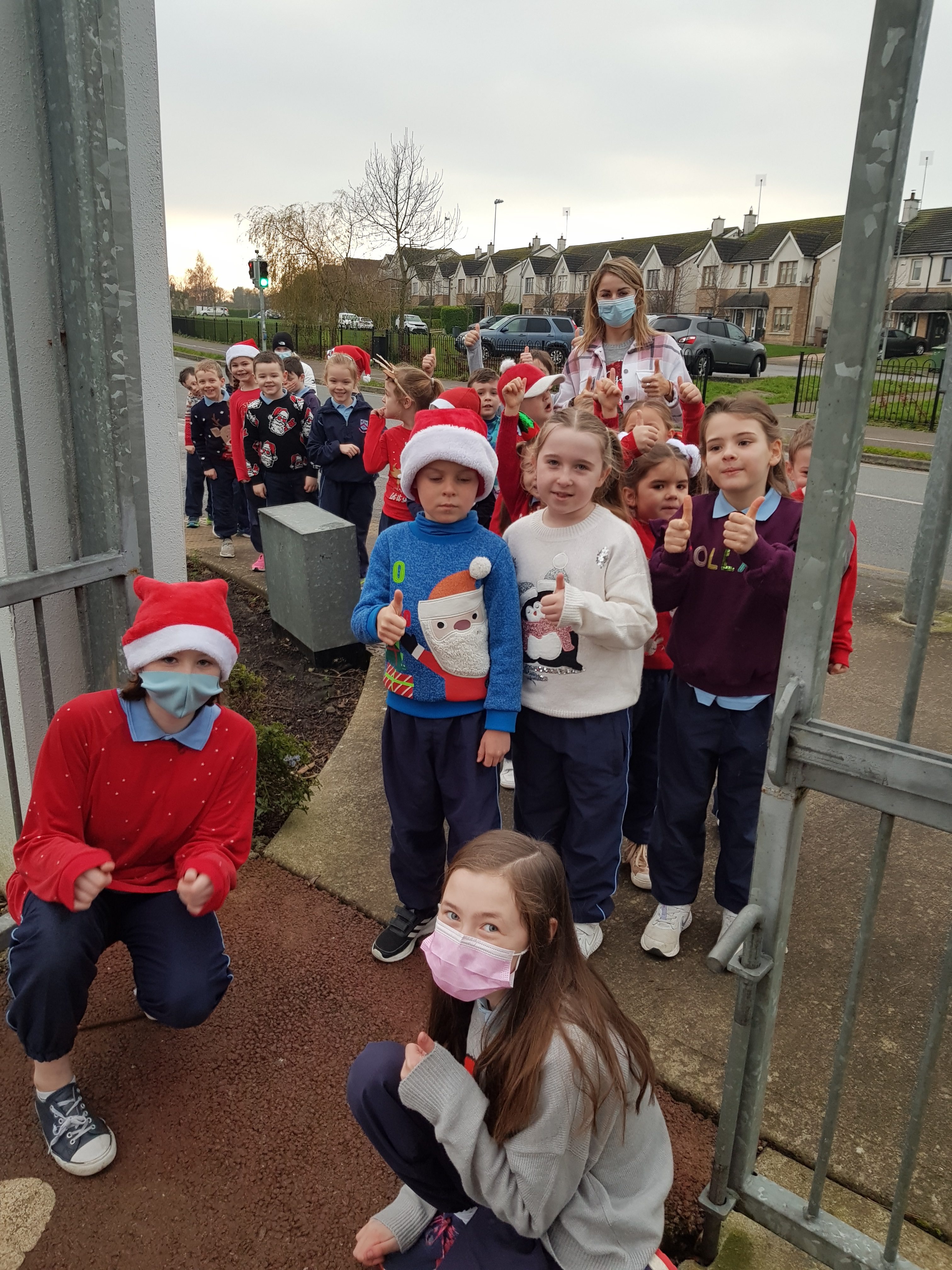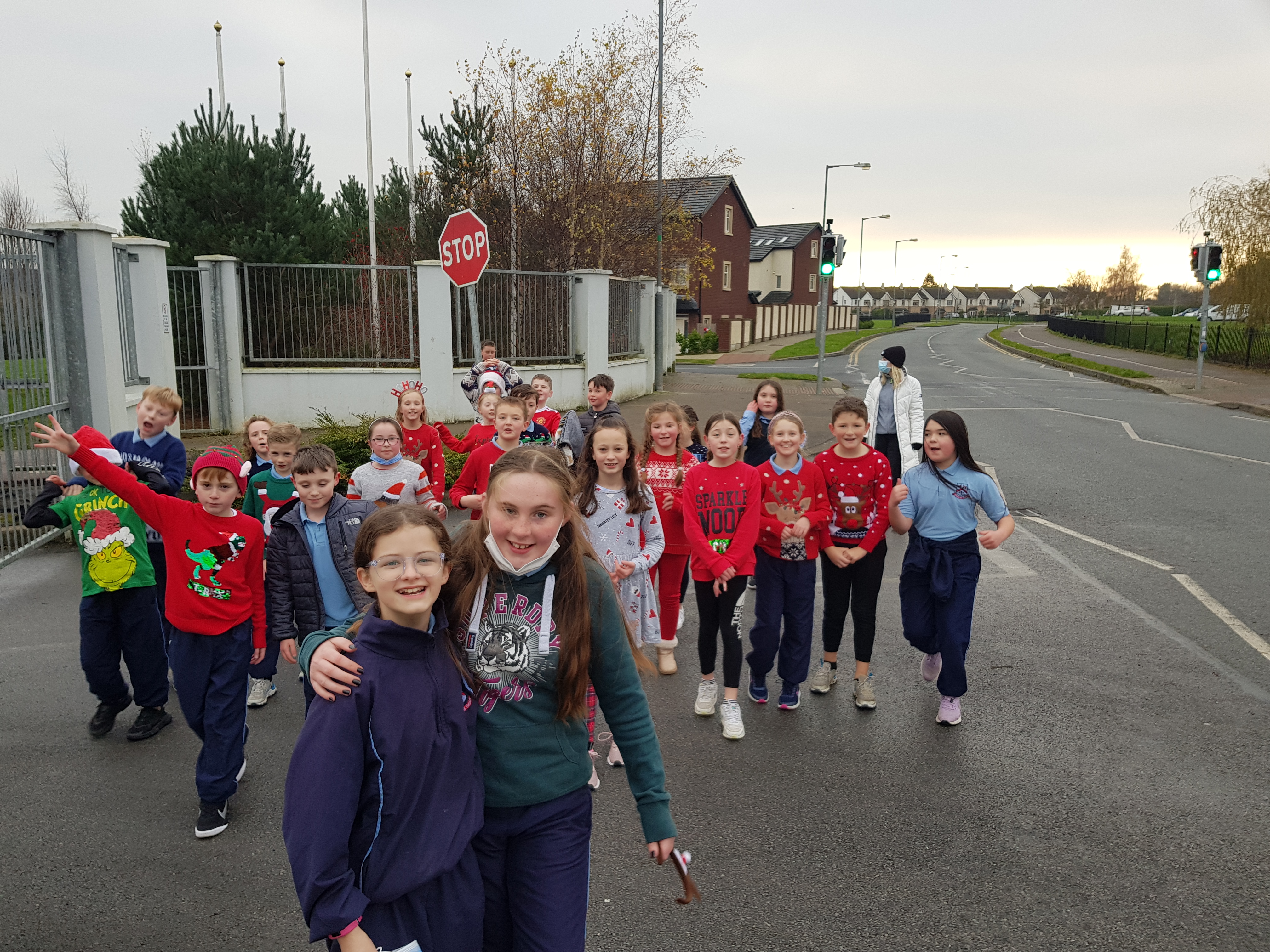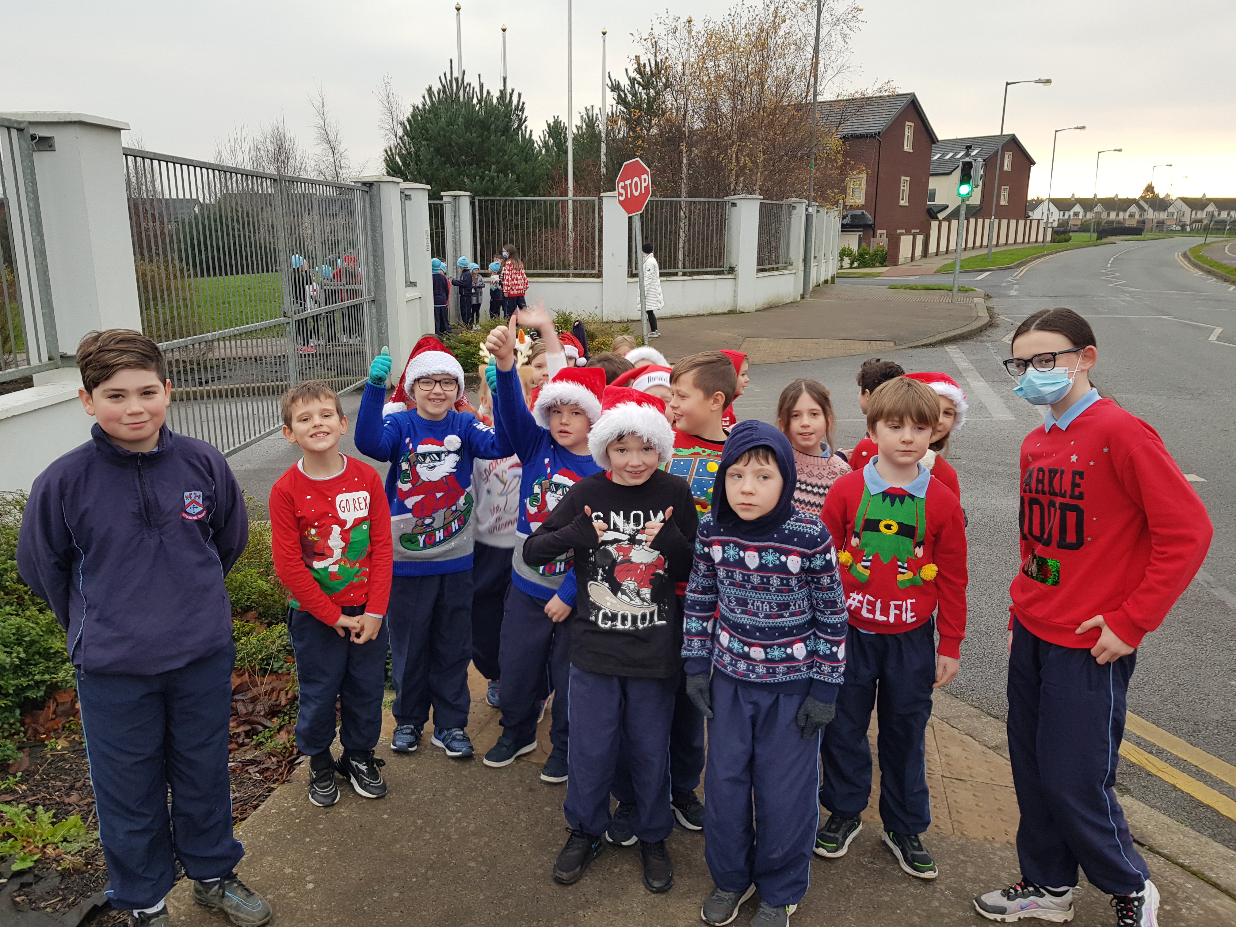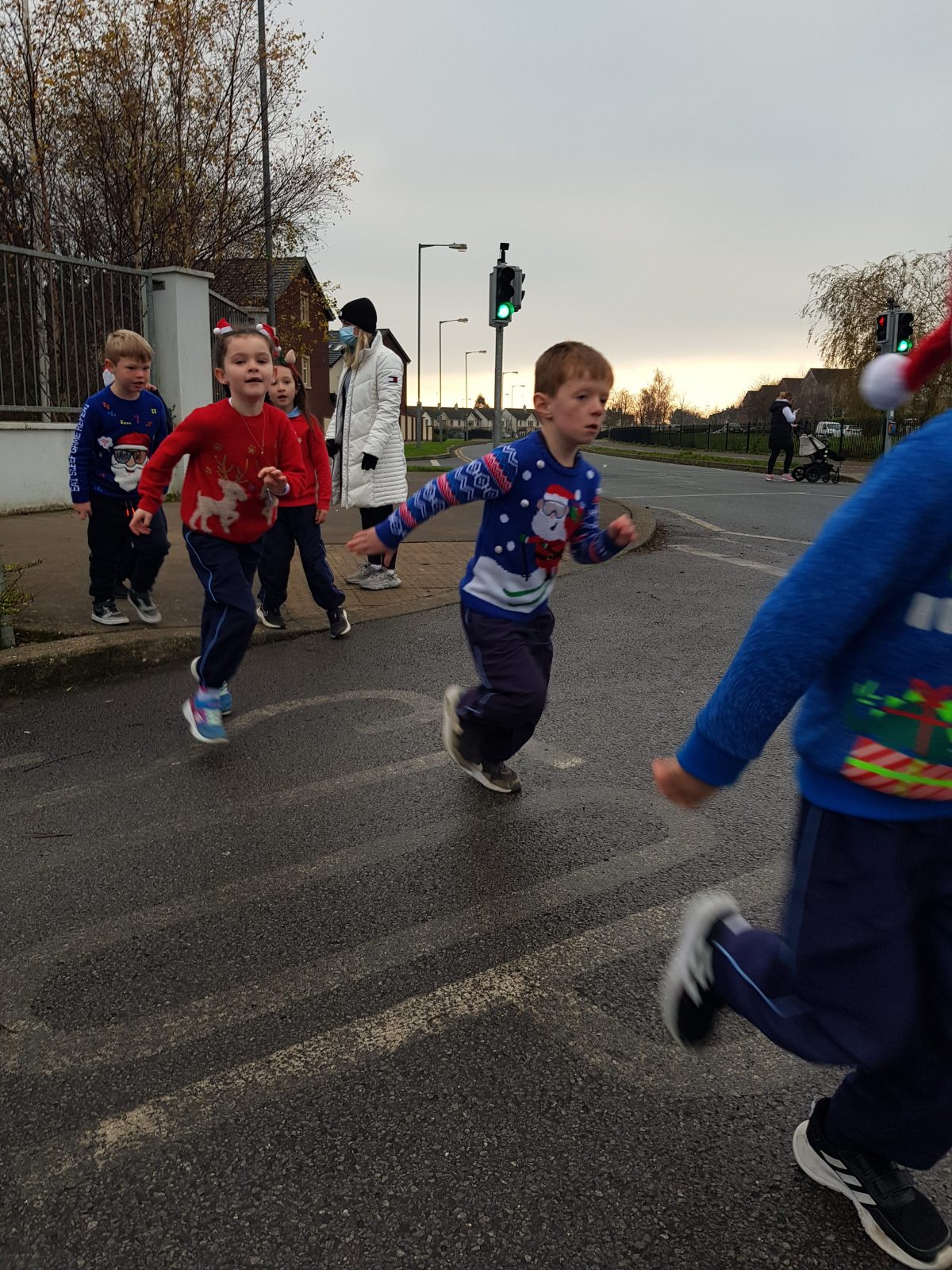 On Friday 17th December, the children of St. Paul’s N.S. took part in a Santa Run on the school grounds. All children wore their school tracksuits and something festive. The children turned up very excited wearing Christmas Jumpers, Christmas Hairbands, Santa Hats and all looked very festive.